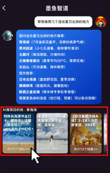3、AI助手将快速回答你的问题,并且自动为你推荐相匹配的路线。