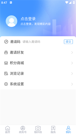 1、登陆账号、邀请好友获得积分,内置积分商城可兑换物品;