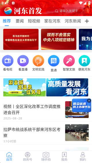 2、“首页”可以看到有关河东的诸多新闻、资讯等内容,还设有各种板块的快捷通道;