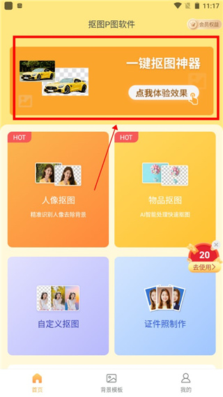 1、在本站下载并安装软件后打开,进入软件后点击一键抠图,如图;
