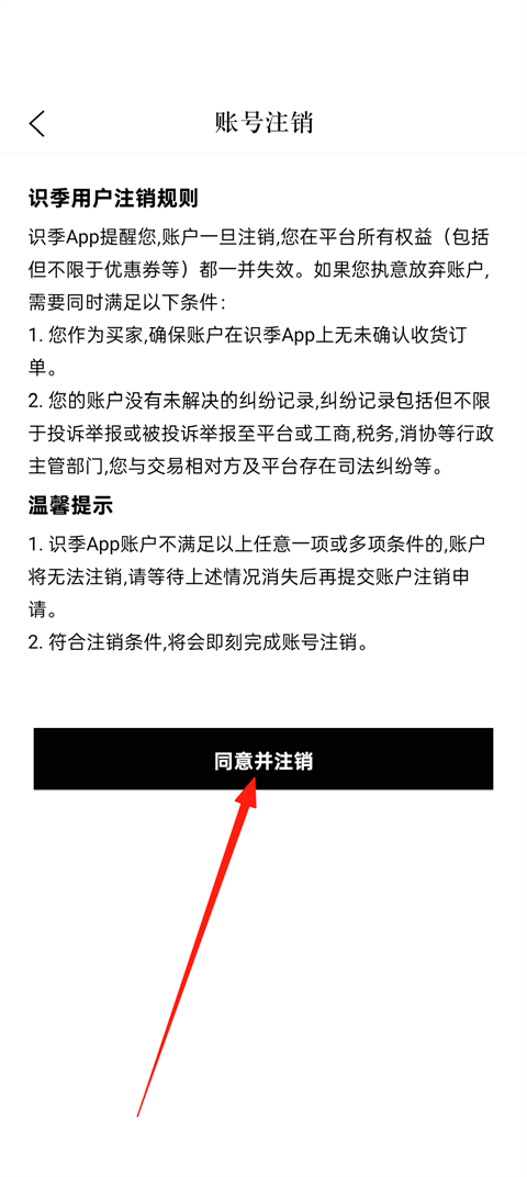 4、最后点击【同意并注销】