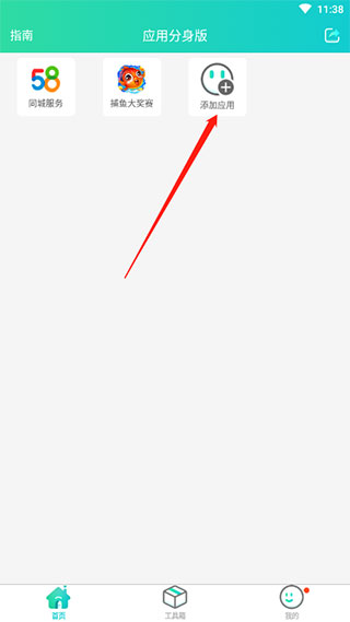 1、下载安装微信分身版,运行软件,在首页有个添加应用,我们点击它;