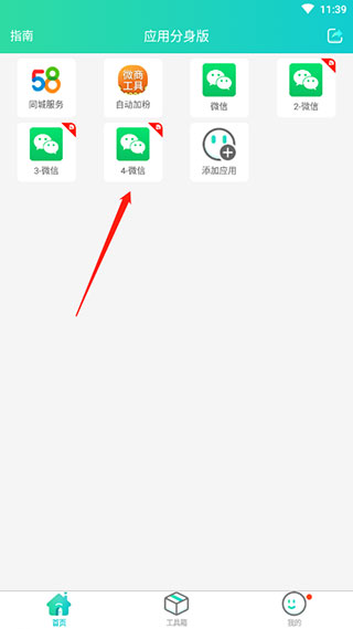 3、然后在首页就会有个多开的微信,这样就多开好了;