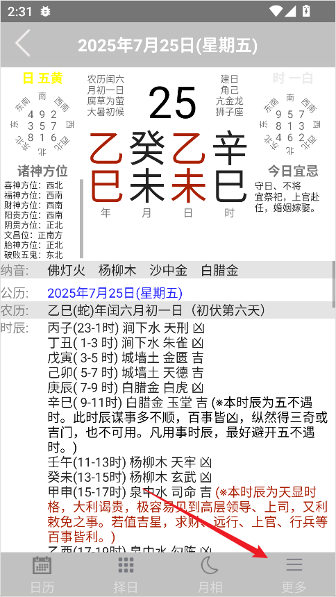 1、打开易学万年历App,点击底部导航栏中的【更多】选项;