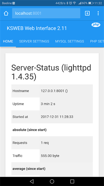 要启动Web服务器,您需要:启动KSWEB,必要时指定端口和根目录。默认情况下,KSWEB包含所有组件的完全配置的配置文件。