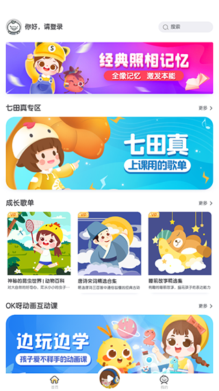 七田真启蒙是一款专门为三到八岁的小朋友们所打造的学习娱乐平台,搭配了大量的功能让孩子拥有一个非常快乐的童年,线上儿歌点播并且能够仪器厂,还有各种故事会的知识讲解以及互动方式都可以让小朋友爱上学习,语数英三主科将用最有趣的问答来激发孩子的正能量学习态度,无广告且没有任何收费项目,让家长们也可以放心把手机交给孩子自己游玩哦。